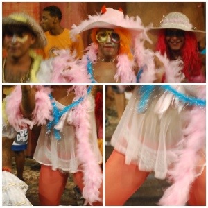 Leave behind any clichés of Brazilian carnival you may have. In this city it’s all about the music, and the participants are the performers transforming their abadá (bloco t-shirt) into haute-couture outfits dancing in the make-shift dance floor cordoned off with rope by the cordeiros. Pipocas (spectators) watch on, enjoying a free party. There are no tiny glitzy-feathered costumes (unless worn by men in drag!) or perfectly performed samba routines here… What goes on in streets of Salvador is between you and the music!