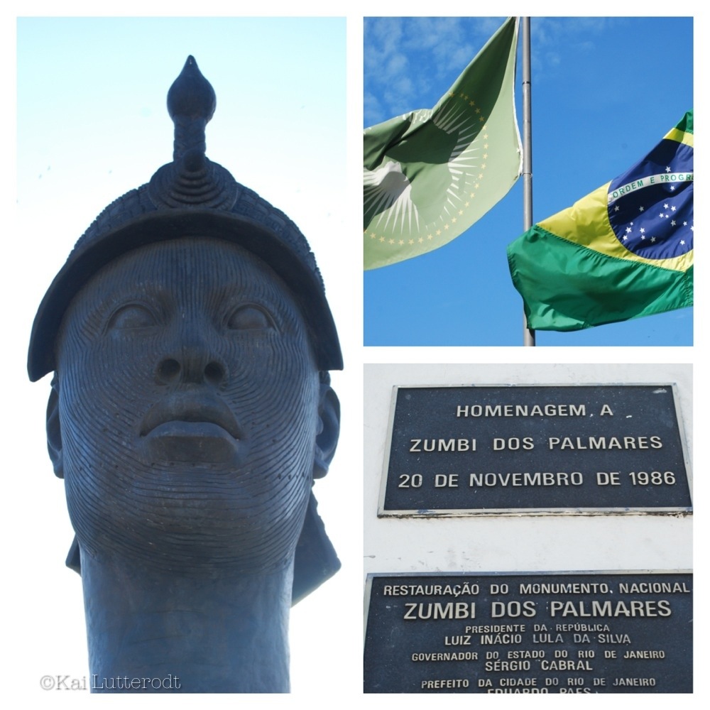 Our stroll through downtown Rio de Janeiro within close vicinity to the world-famous Sambadrome, home to Rio’s carnival, lead us to a statue dedicated to the memory of the legendary Quilombo (settlements consisting of African runaway slaves) leader, Zumbi dos Palmares (1655–1695). He is remembered as a leading figure in the black resistance to slavery in Brazil. Standing in front of her icon, Patricia told me: